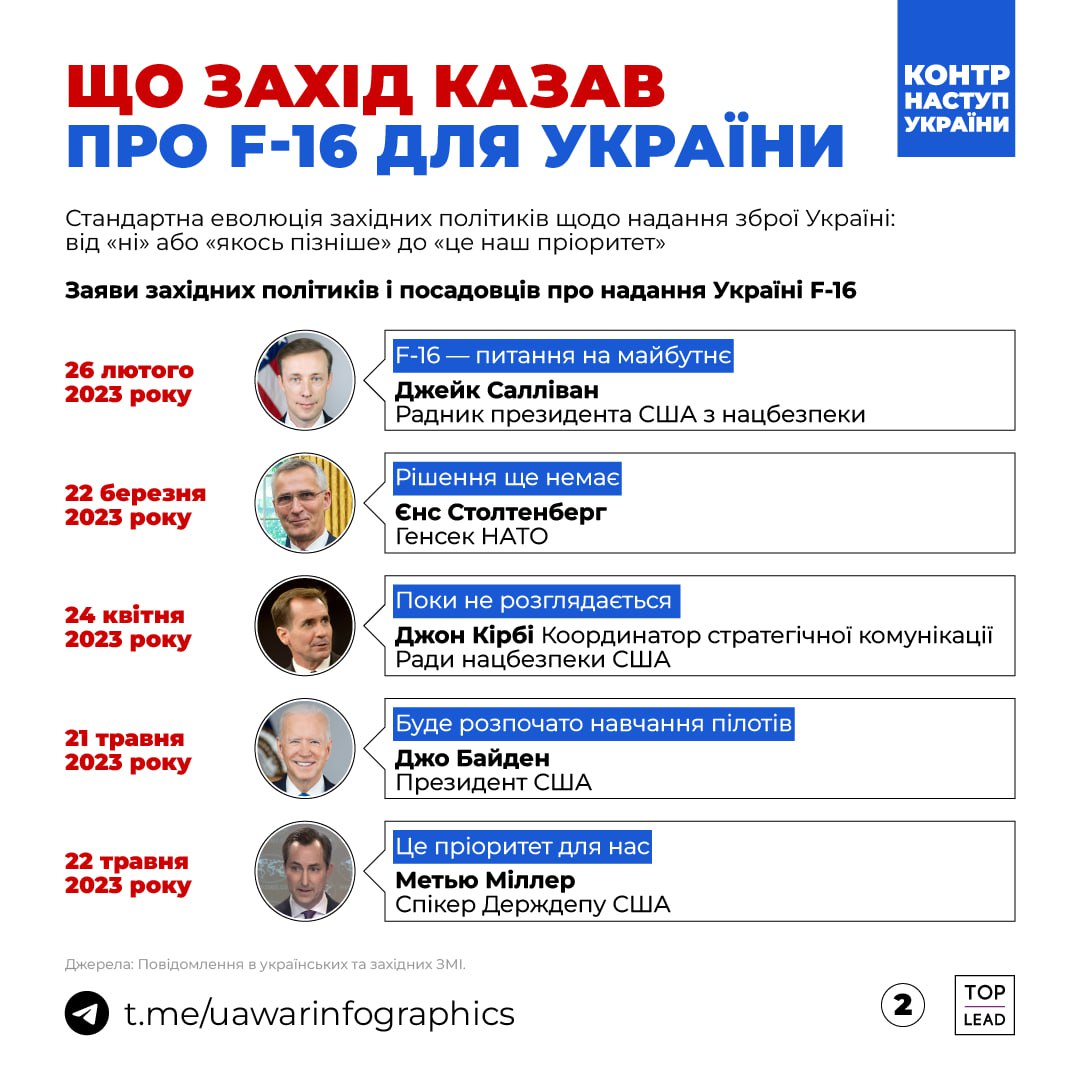 Вчора міністр оборони Данії заявив, що його країна готова надати F-16 у випадку, якщо це схвалять США. З нетерпінням чекатимемо доповнення цього списку.