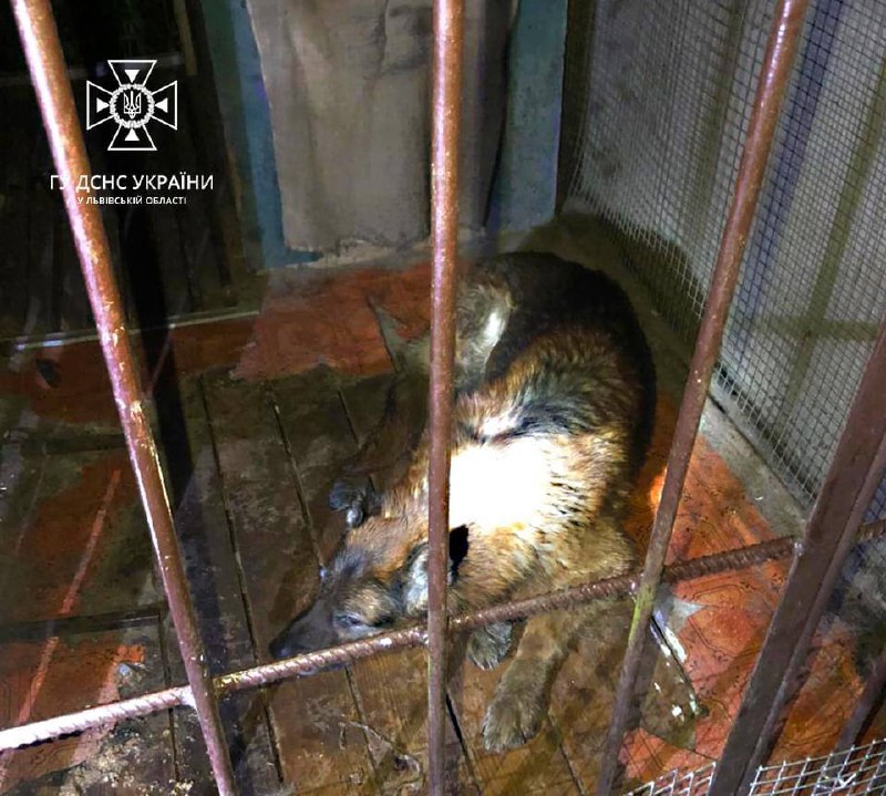 The dog fell into a sewer well about 3 meters deep in the village of Strilkovychi. Rescuers pulled the dog out and handed it over to its owner.