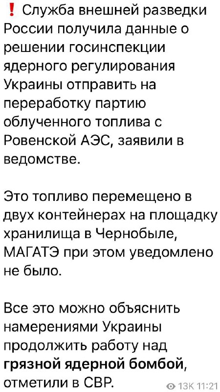 🤡 Russian media reports that a dirty nuclear bomb is being prepared in Chornobyl