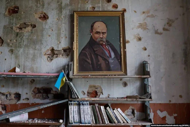 В зруйнованій бібліотеці звільненого Благодатного вцілів портрет Шевченка