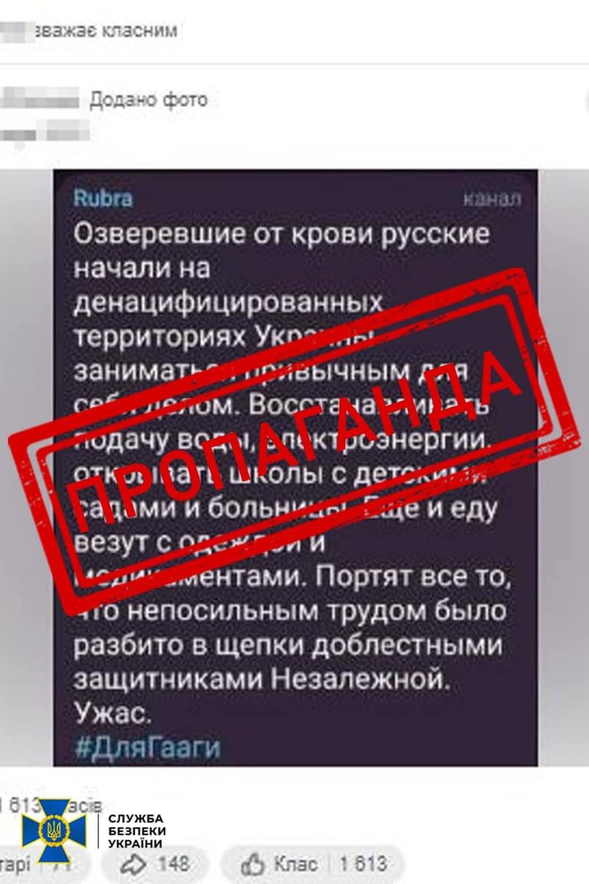 On her personal page on social networks, the woman spread Kremlin narratives and glorified the occupying army.