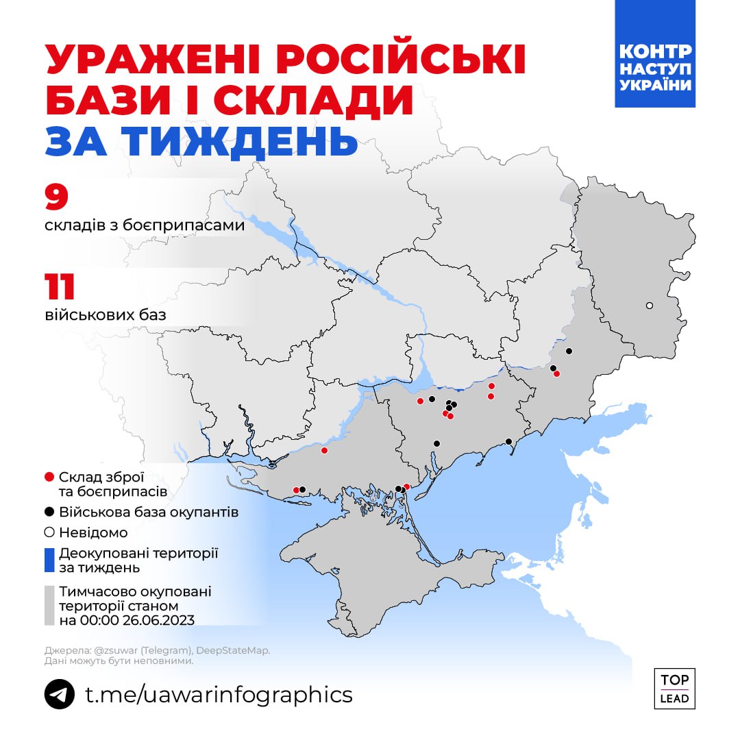 За минулий тиждень ЗСУ знищили 9 російських складів та 11 баз. А може навіть і більше, але інформація про них не потрапила до відкритих джерел.