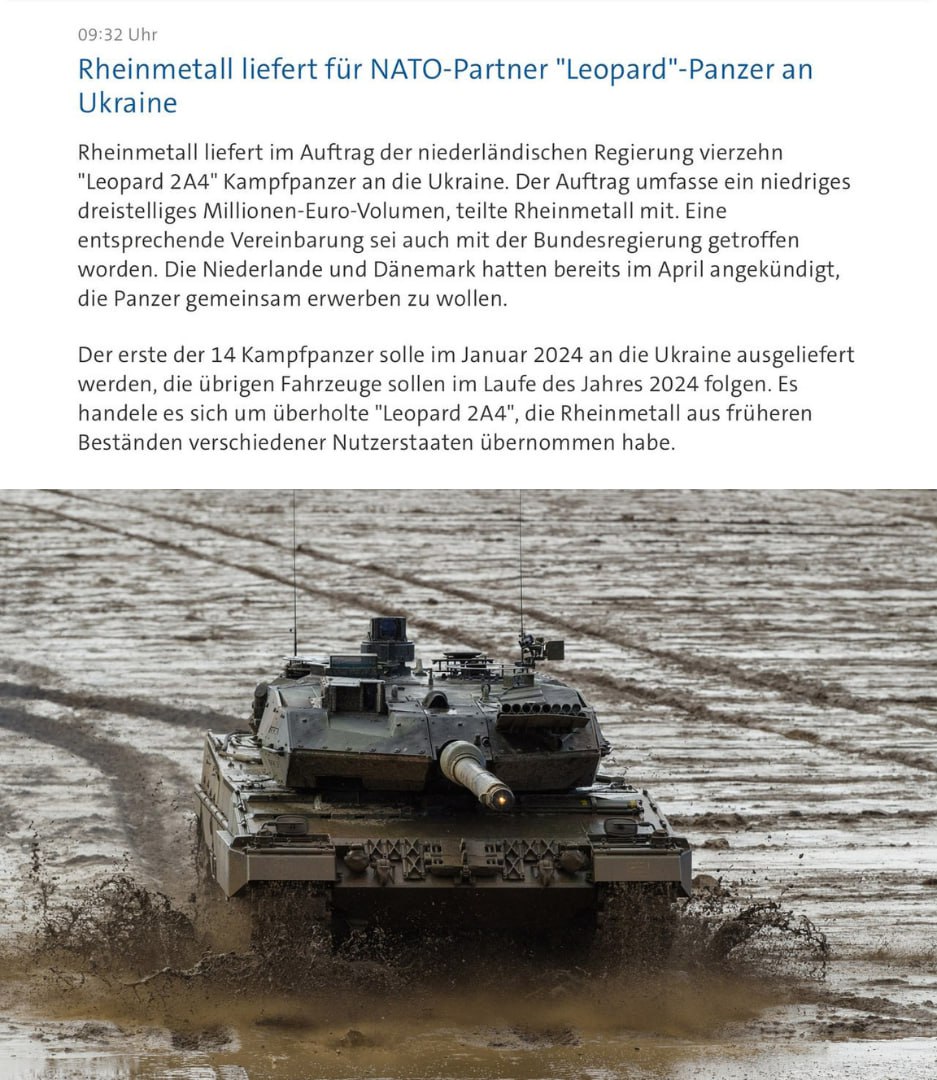 The Netherlands will transfer 14 Leopard 2A4 tanks to Ukraine in 2024