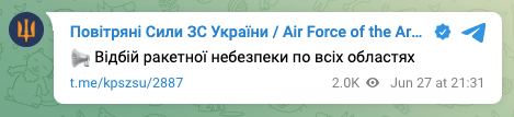 Відбій ракетної небезпеки по всіх областях