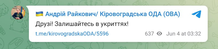 ❗️Глава Кировоградской ОВА призывает жителей оставаться в укрытиях