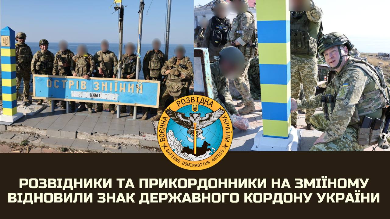 The previous one was destroyed by the invaders during the occupation of the island. The Head of the State Border Guard Service, Major General Serhiy Deineko, also helped to install the sign.