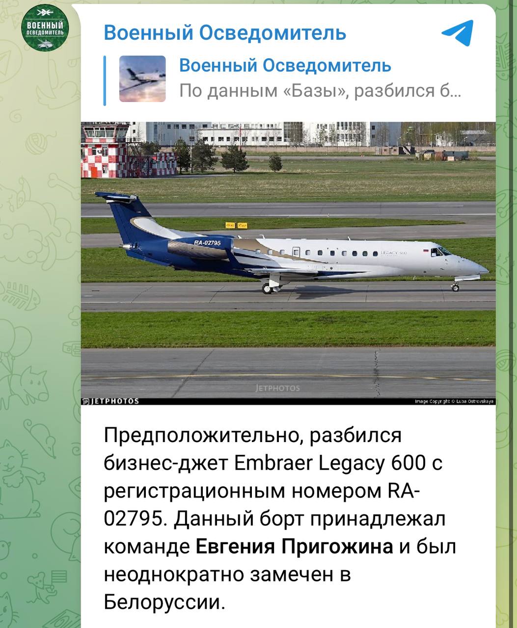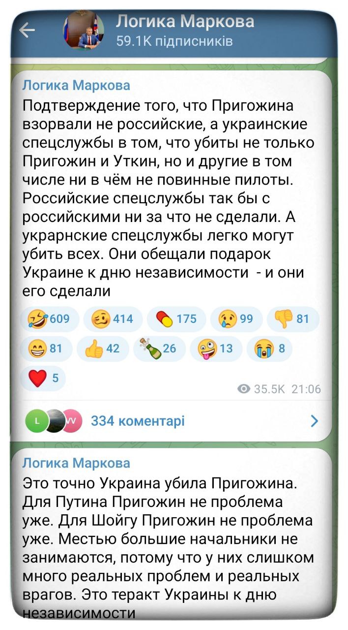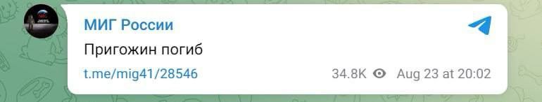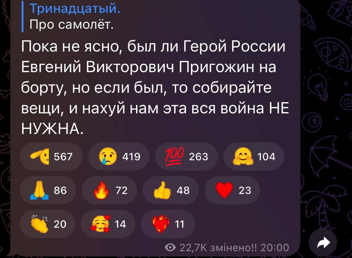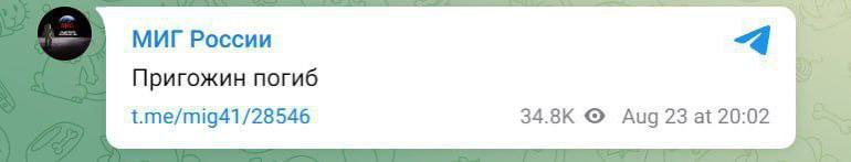 "Putin takes no prisoners" - The Financial Times, citing unnamed officials, claims Prigozhin's plane was shot down by air defense systems