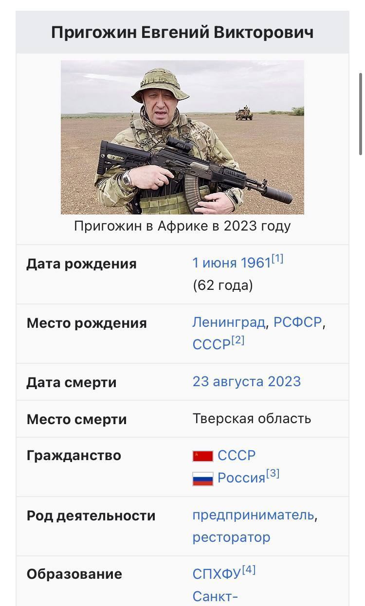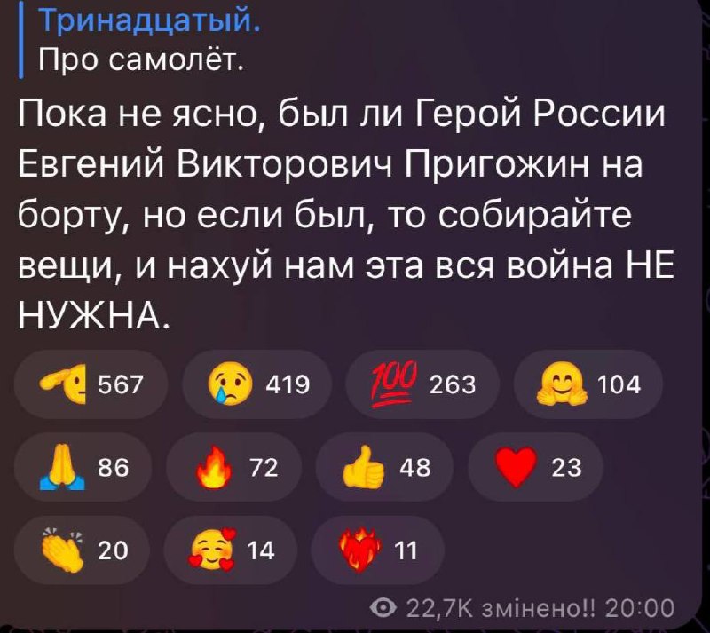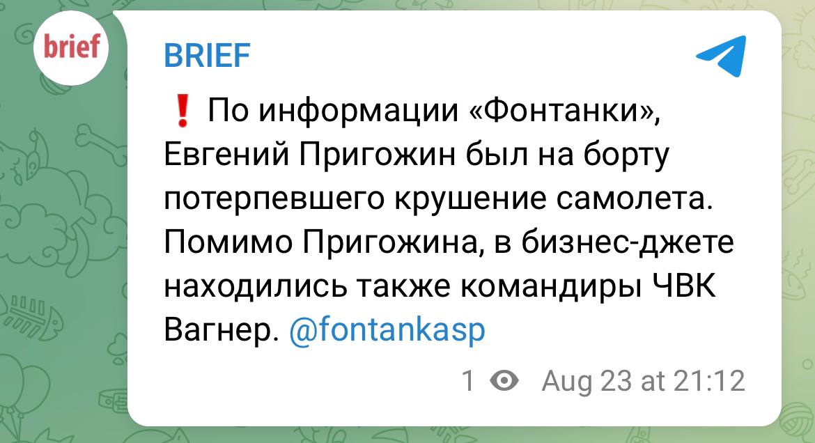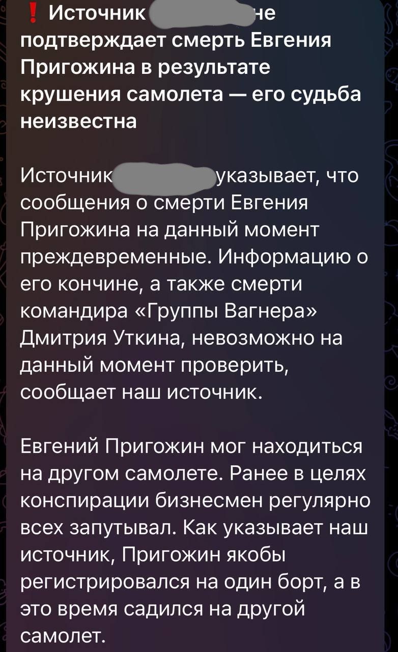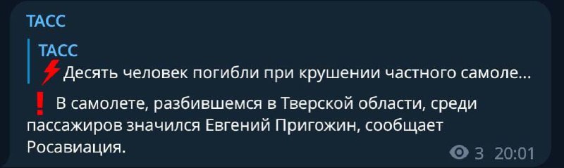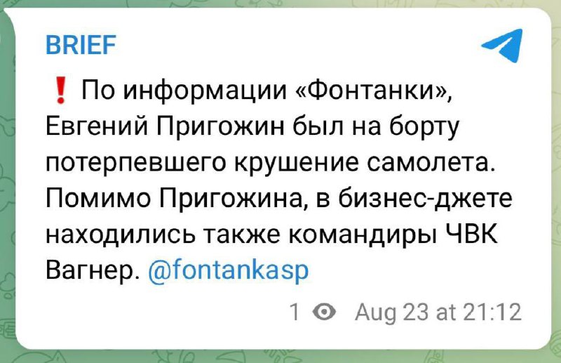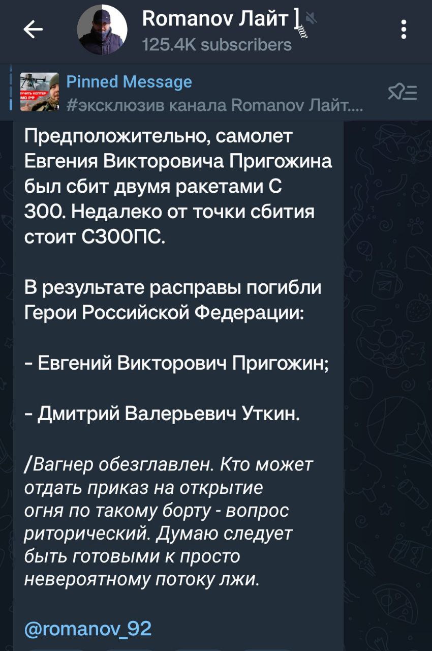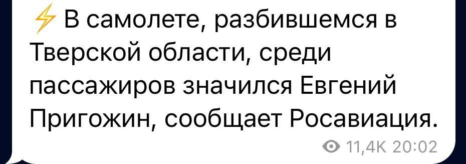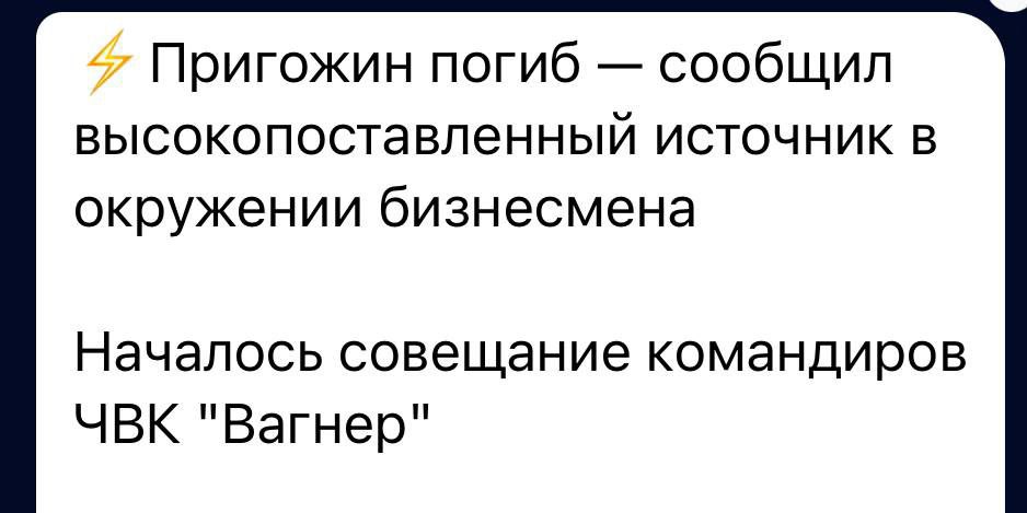 ‼️ Евгений Пригожин с командирами ЧВК Вагнер летел на встречу с путиным в резиденции Валдай. По основной версии, был сбит ракетой ПВО, — росСМИ...