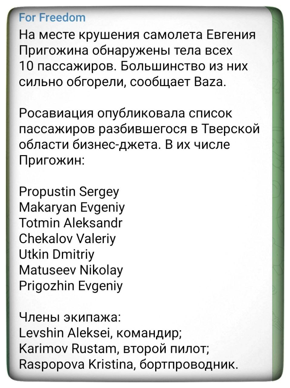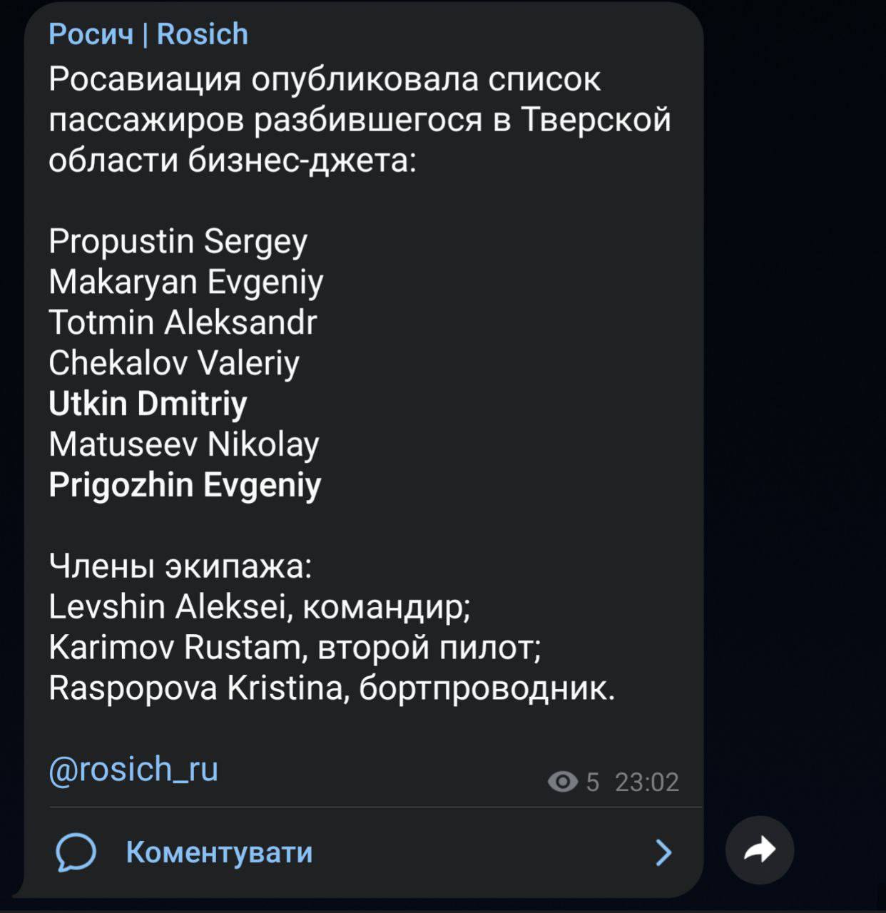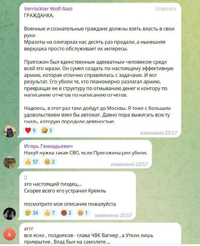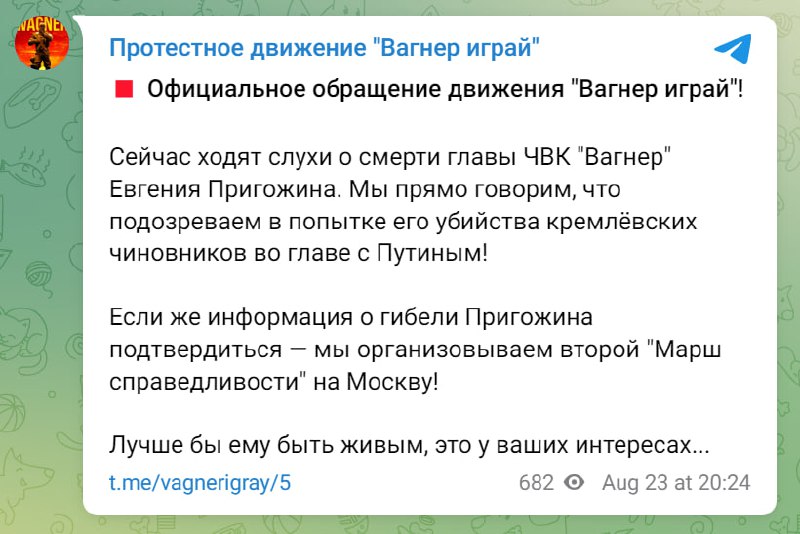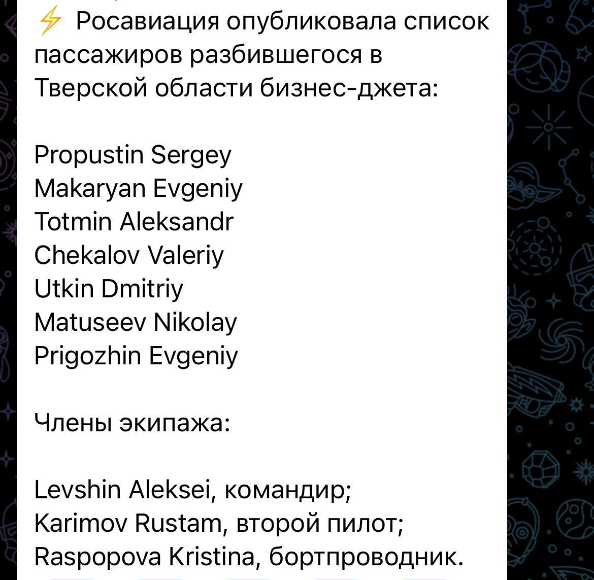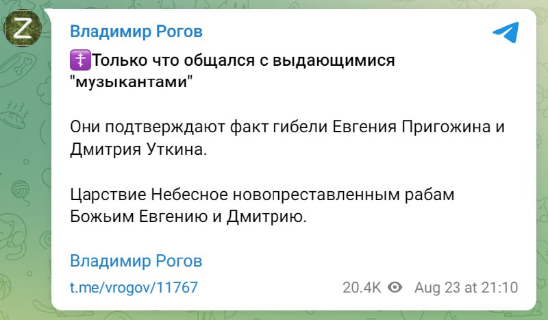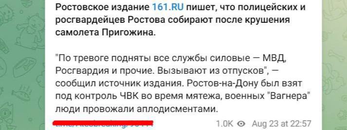 ‼️ Евгений Пригожин с командирами ЧВК Вагнер летел на встречу с путиным в резиденции Валдай. По основной версии, был сбит ракетой ПВО, — росСМИ...