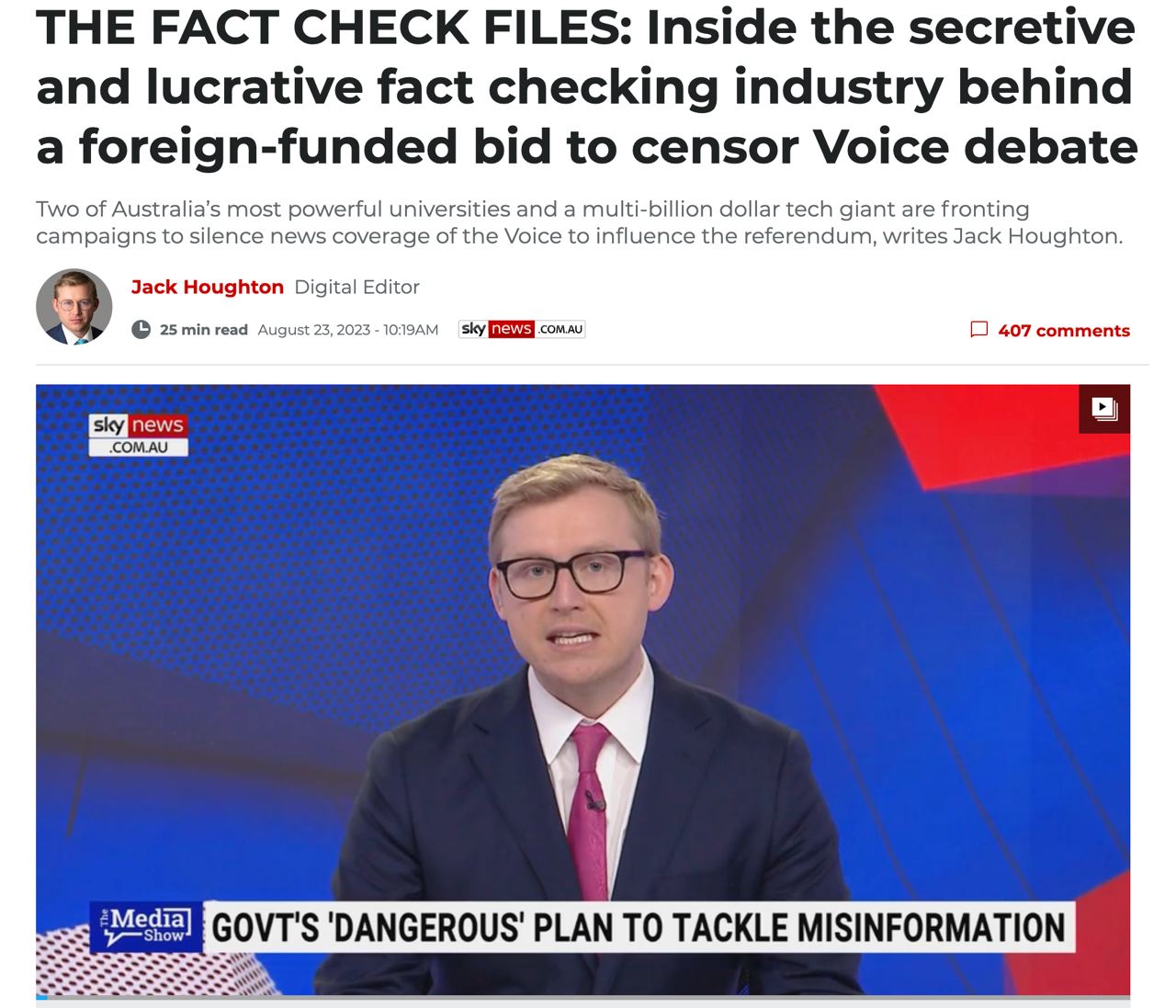Таким образом он прокомментировал расследование Sky News Australia о том, что отдел проверки фактов в австралийском сегменте Facebook занимается политической цензурой, а сам Facebook финансирует активистов, требующих заблокировать своих оппонентов во время национального референдума.