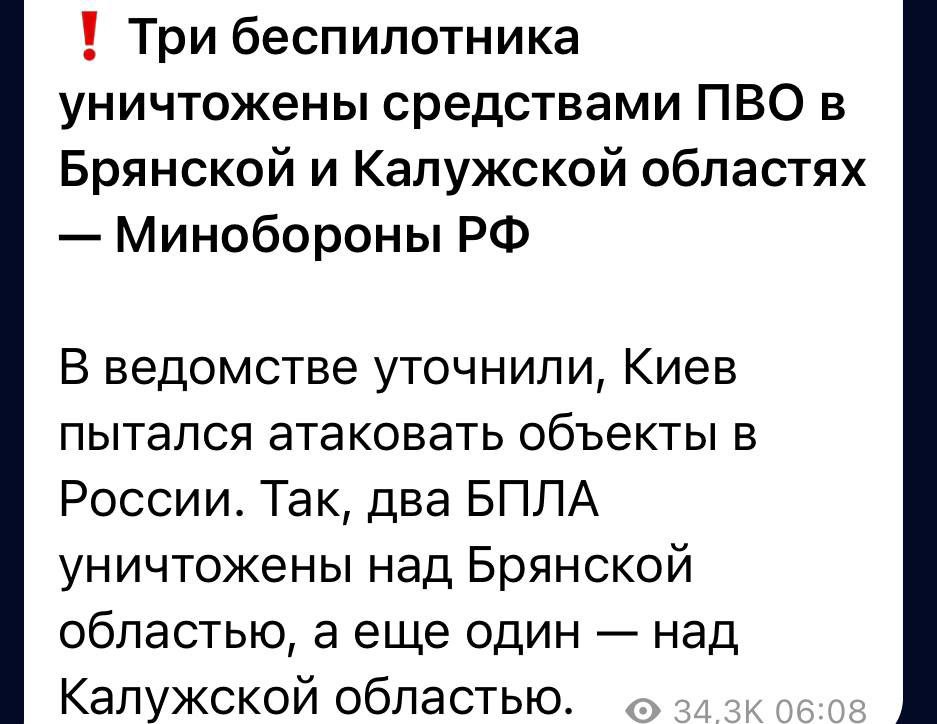 Невідомі БПЛА атакували Калузьку область! Традиційно збиті! Але русні віри нема!
