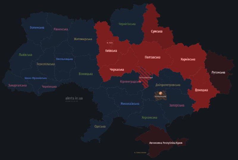 ‼️Шестая за сутки масштабная воздушная тревога по Украине