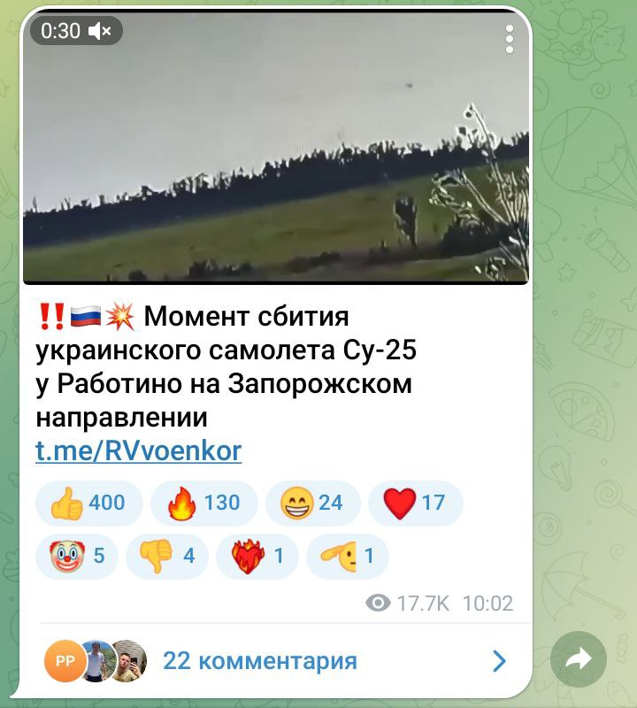 🫡Точно в ціль - під Роботине відʼємно злетів ворожий су-25