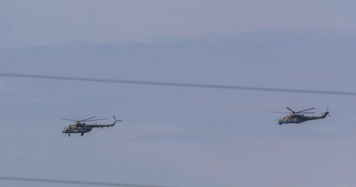 A Russian Ka-52 somewhere near Rabotyno is launching a Vykhri ATGM at our armored vehicles. As usual, it is paired with a Mi-28N.