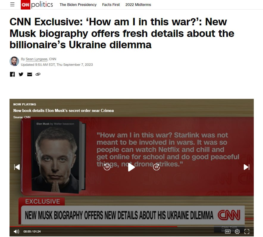▪️Ілон Маск таємно наказав відключити Starlink минулого року і зірвав атаку України морськими дронами на флот ВМС рф