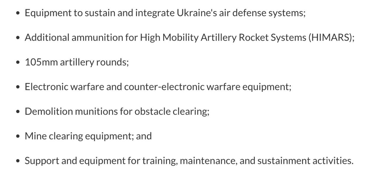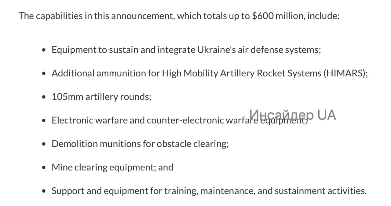 ▪️США announced a new aid package for Ukraine worth $600 million