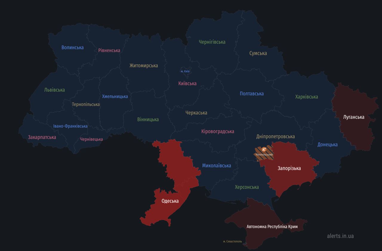 Air raid alert: Odesa region, Zaporizhzhia