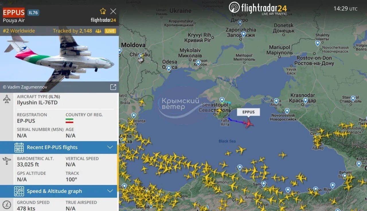 An Iranian Il-76TD Pouya Air (EP-PUS) freighter flew into occupied Simferopol, Crimea today