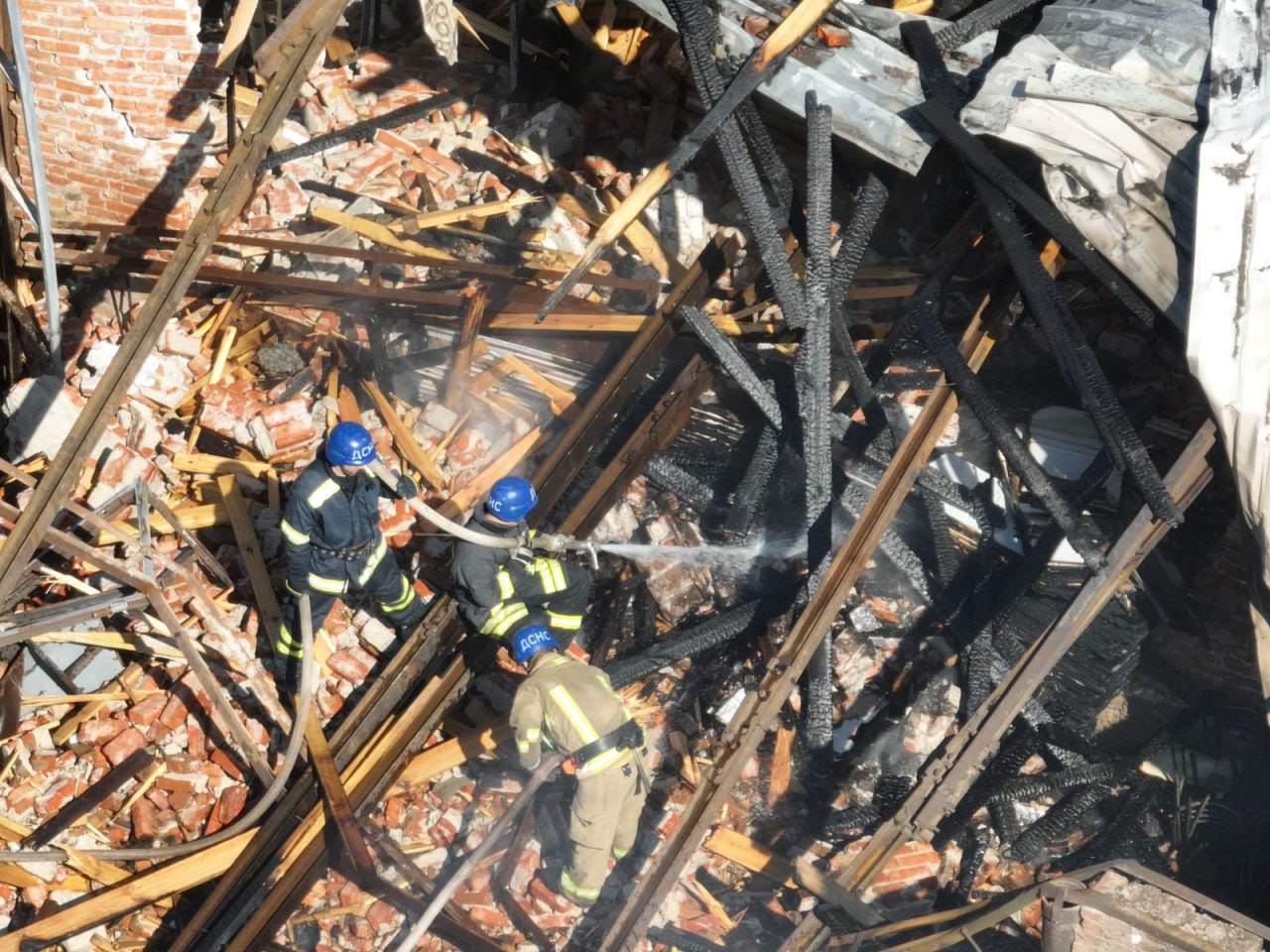 До приїзду рятувальників разом із мешканцями сусідніх будинків інспектори гасили пожежу. З-під завалів вдалося врятувати літнє подружжя та їхнього чотирилапого.