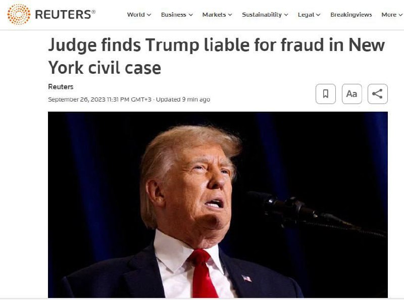 ❗️Суд found Donald Trump guilty of fraud - Reuters.