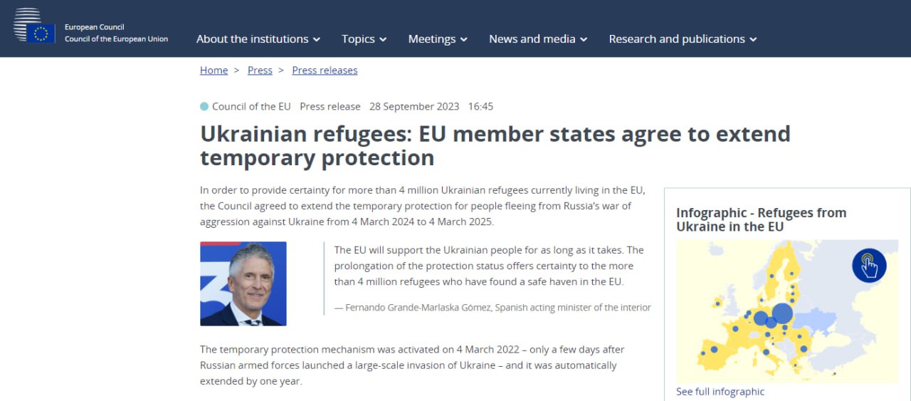 🇪🇺 The EU Council has extended temporary protection for Ukrainian refugees until March 4, 2025.