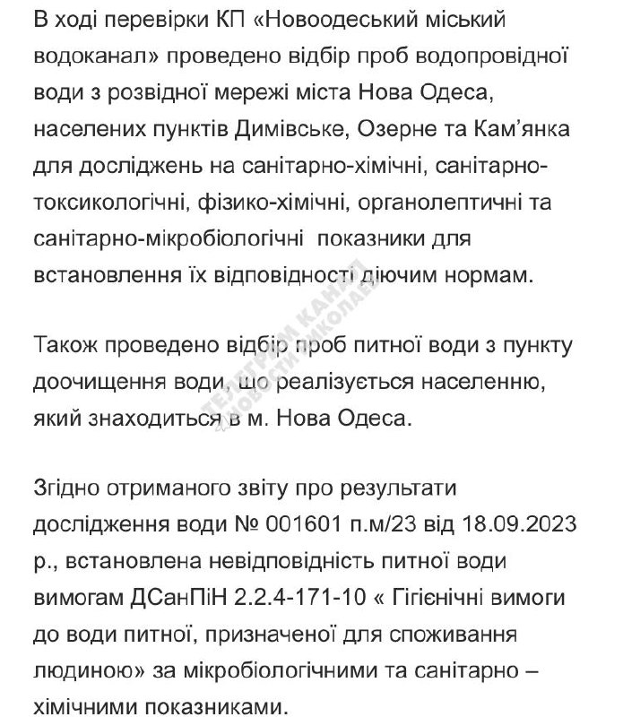 Important information about water supply in Snihurivka