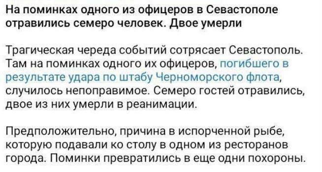 At the wake of one of the officers in Sevastopol, seven people were poisoned by fish. Two died - rosmedia