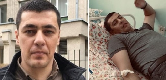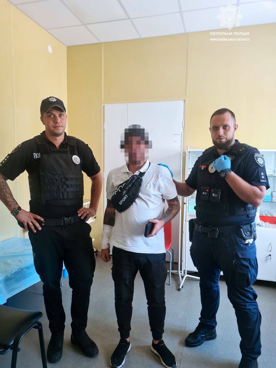 Yesterday, at about 11 o'clock, inspectors Serhii Kuzmenkov and Vitalii Ilyashenko received a report that an unknown man had cut his wrists in a shop on Bila Street.