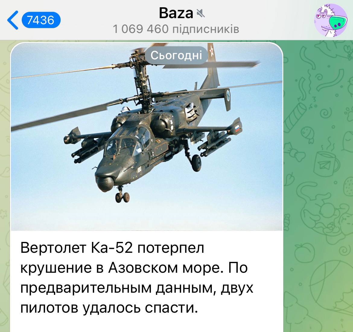 Вертоліт Ка-52 зазнав катастрофи в Азовському морі. Двох пілотів, на жаль ,вдалося врятувати…