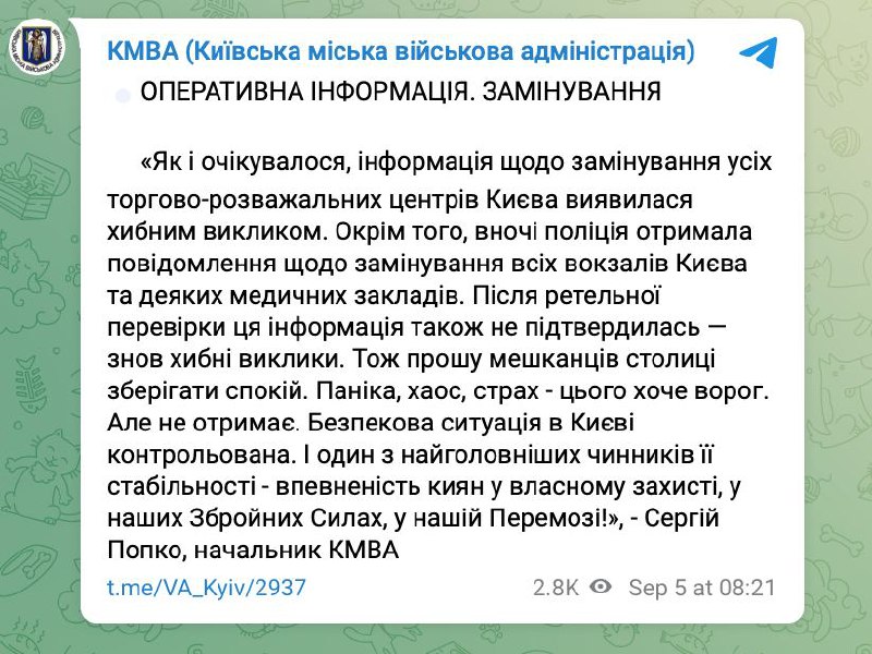 ❗️ In Kiev there was information about "booby-trapping" of all shopping malls, the information was not confirmed. - KMVA
