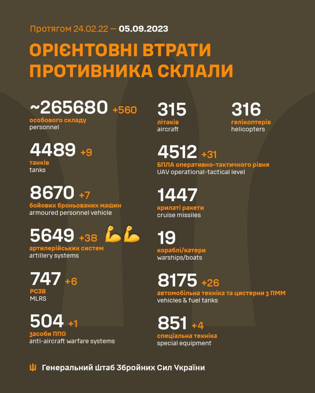 Загальні бойові втрати противника з 24.02.22 по 05.09.23: