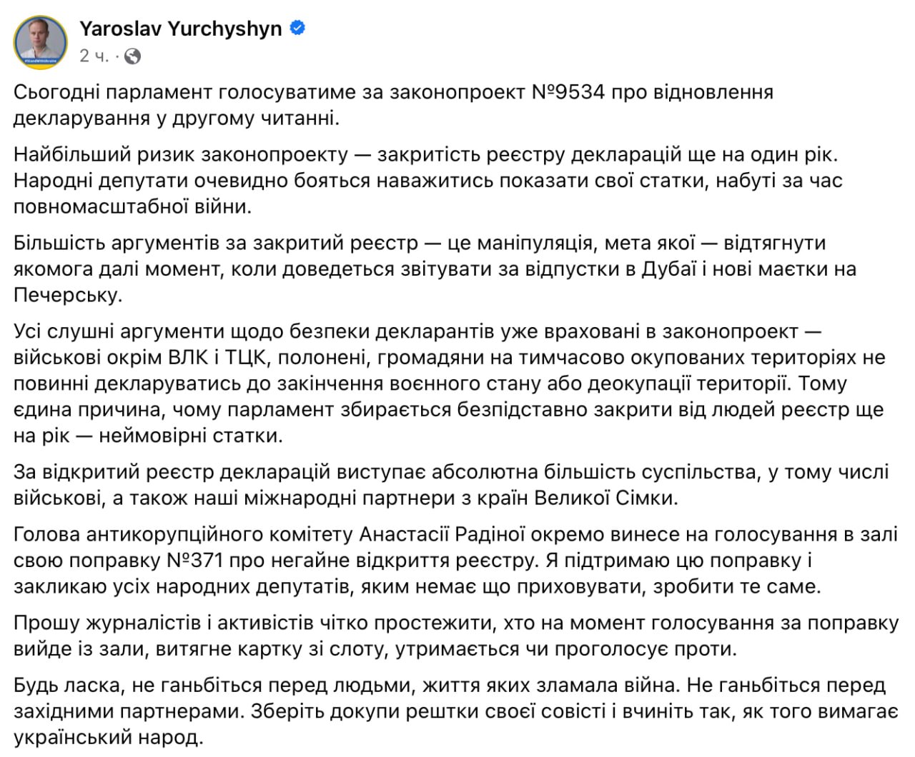 ‼️ Верховна Рада прийняла в цілому законопроєкт про повернення електронного декларування чиновників, але головна правка про відкриття декларацій негайно не набрала достатню кількість голосів...