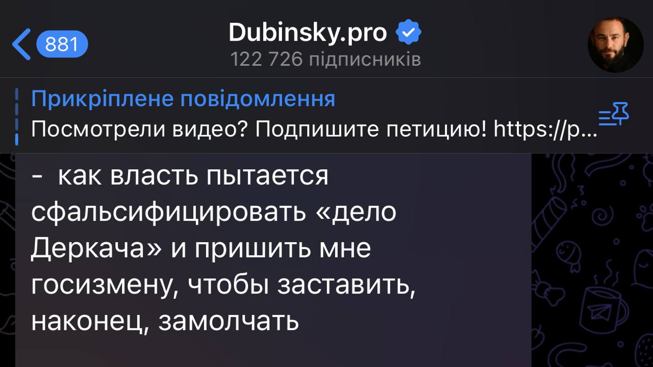 Також Дубінський жив на каналах Медведчука, регулярно просував «мʼяку» пропаганду про «зовнішнє управління» услід за самим Медведчуком.