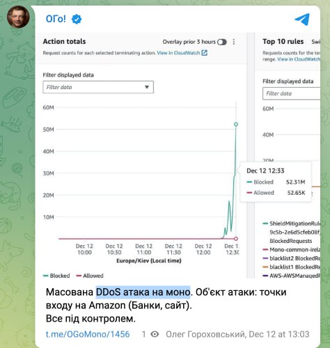 Monobank is undergoing a massive DDoS attack, co-founder Oleg Gorokhovsky reports. He says everything is under control.