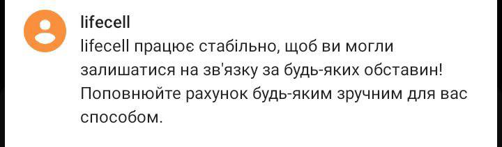 Meanwhile, lifecell seizes the moment and reminds people of its stable operation. Clever :)
