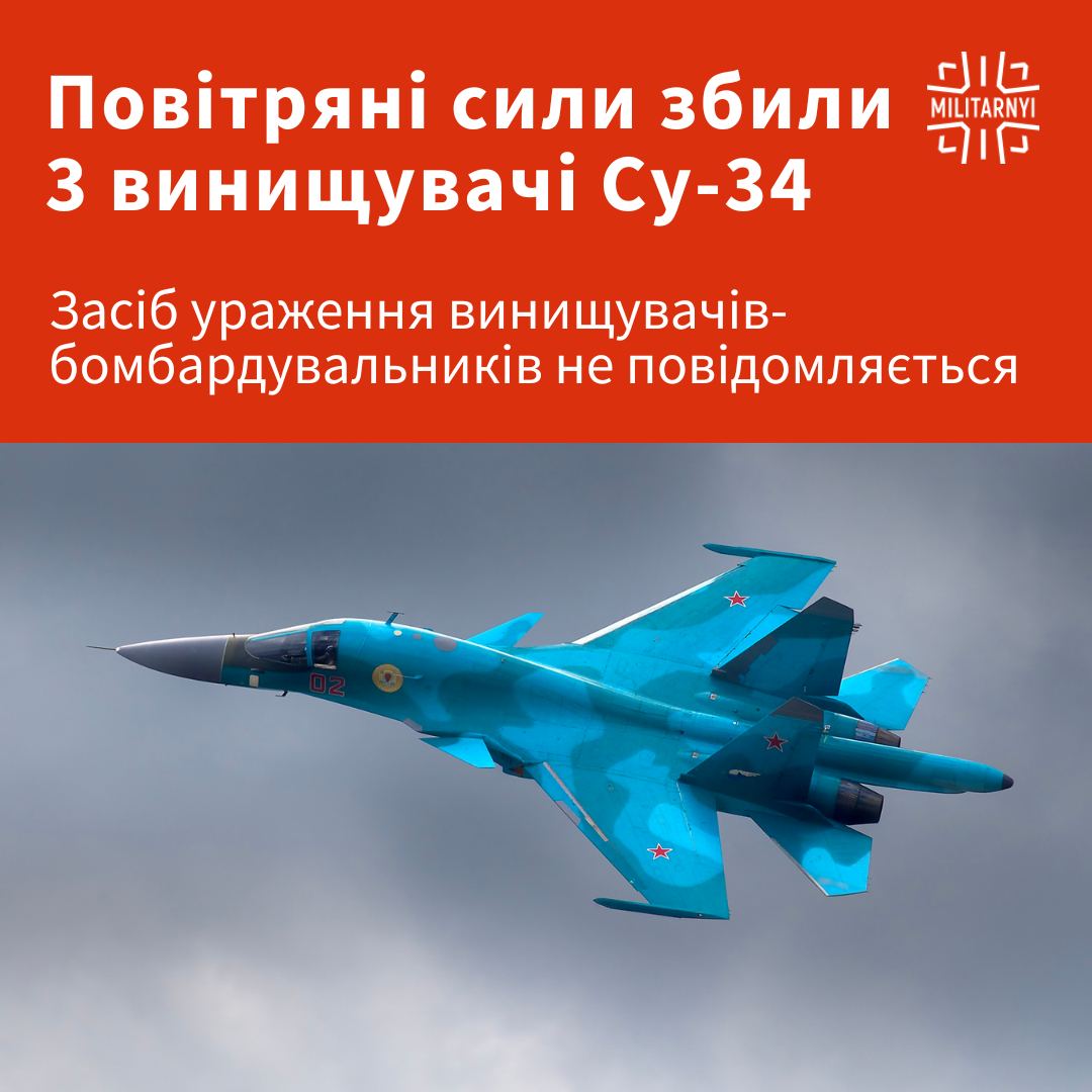 🇺🇦 Повітряні сили ЗСУ на Південному напрямку збили три російські винищувачі-бомбардувальники Су-34.