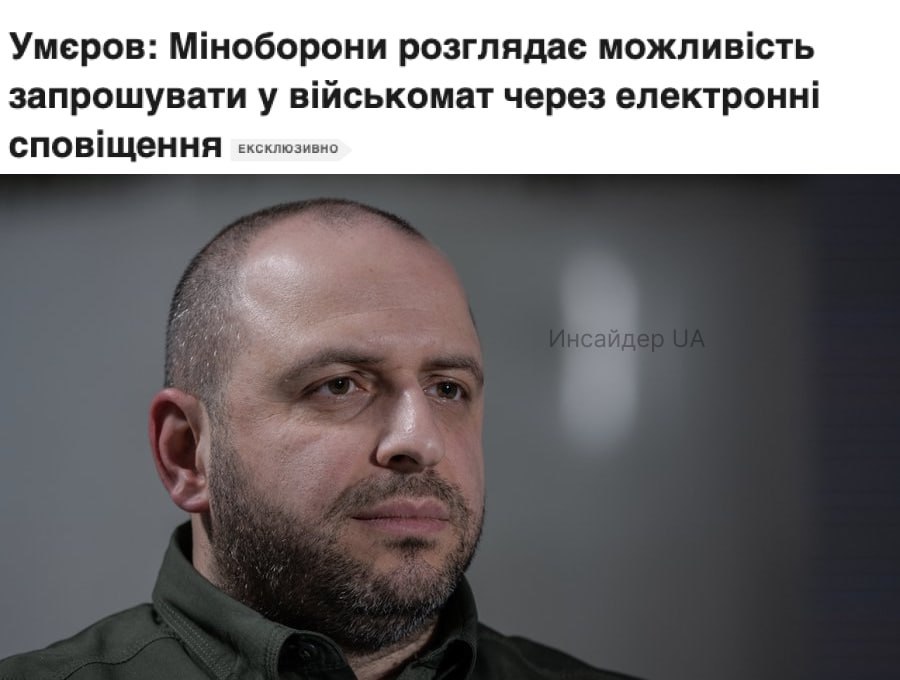 📱 Defense Minister Rustem Umerov said that his ministry is considering inviting men to territorial recruitment centers via electronic notification.