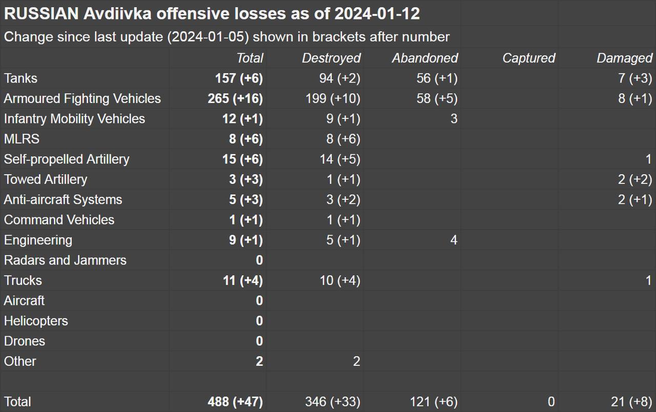 🔄 According to Oryx, there have been documented losses of equipment on both sides since the beginning of the Russian offensive on Avdiivka: