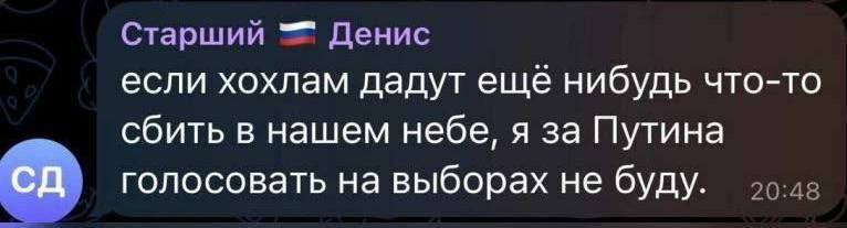 🗣️ Один з російських пілотів у радіоефірі повідомляє, що спостерігав роботу ППО, спалах та вибухи.