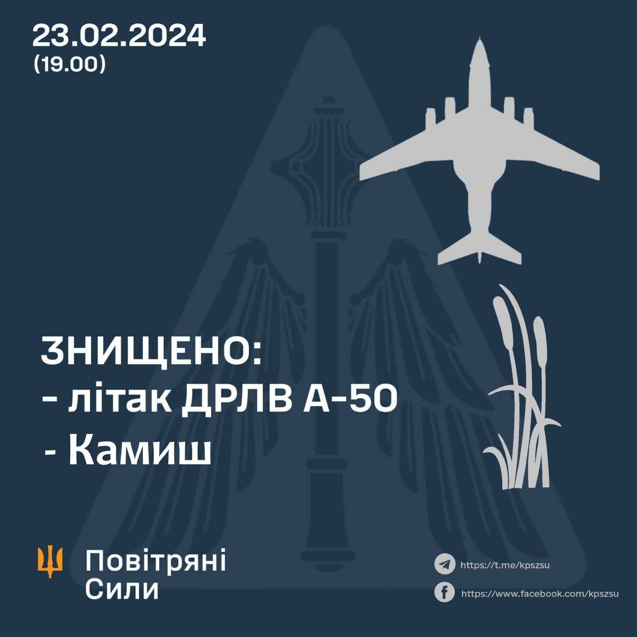 👉 The Defence Intelligence of Ukraine informs that a Russian long-range radar detection aircraft A-50U was shot down on February 23, 2024 near the town of Primorsko-Akhtarsk on the Sea of Azov.