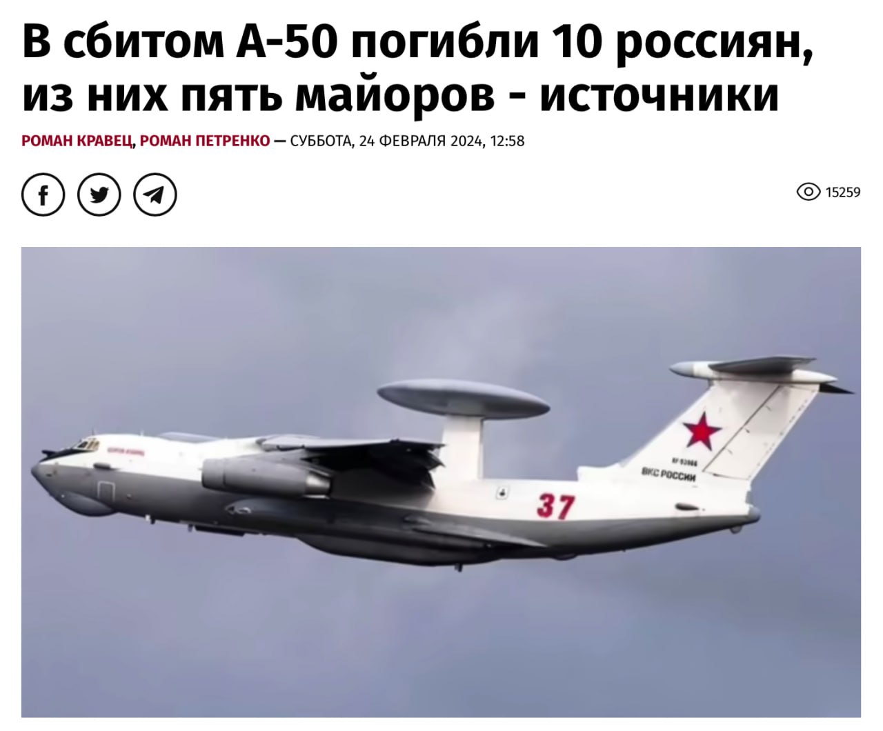 👤 Вогневе ураження модернізованого ДРЛВ А-50У вкс рф також підтверджують радіоперехоплення розмови екіпажу прикриття Су-35.