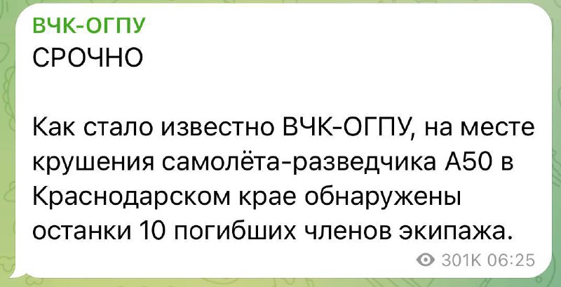 👉 Головне управління розвідки Міністерства оборони України інформує ― літак дальнього радіолокаційного виявлення вкс рф А-50У був збитий 23 лютого 2024 року поблизу міста пріморско-ахтарск на Азовському морі.