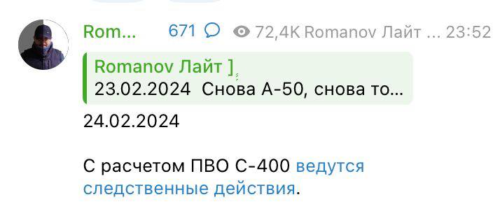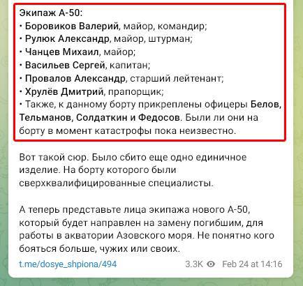 👤 The fire damage of the modernized A-50U by the Russian Air Force is also confirmed by radio intercepts of the conversation of the Su-35 cover crew.