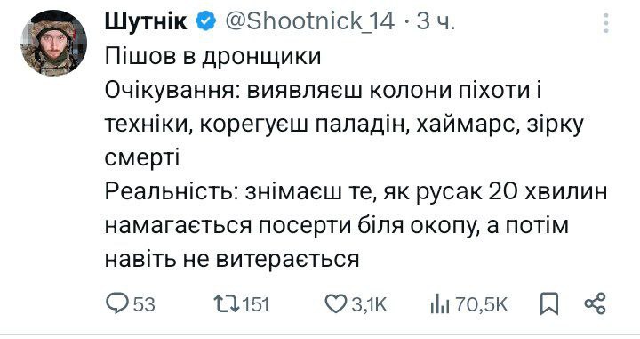 Слава тим, хто бʼється, подяка тим, хто допомагає війську, вічна шана тим, хто загинув. Переможемо!🇺🇦