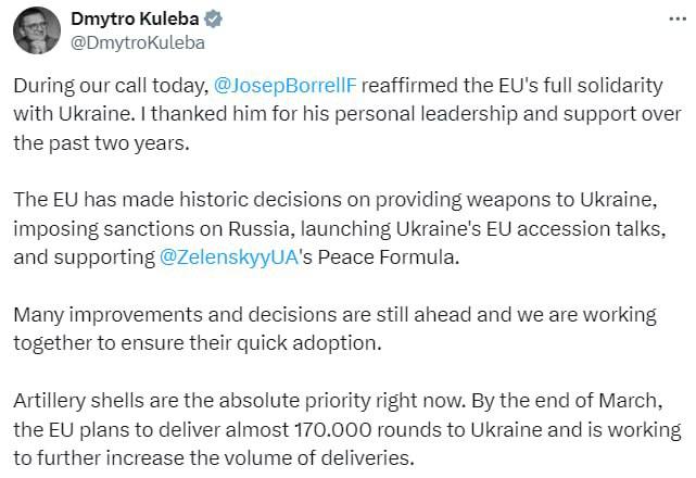 "As never before, we stand firmly on the side of Ukraine. Financially, economically, militarily, morally. Until the country is finally free," Ursula von der Leyen wrote on her page on the social network "X".