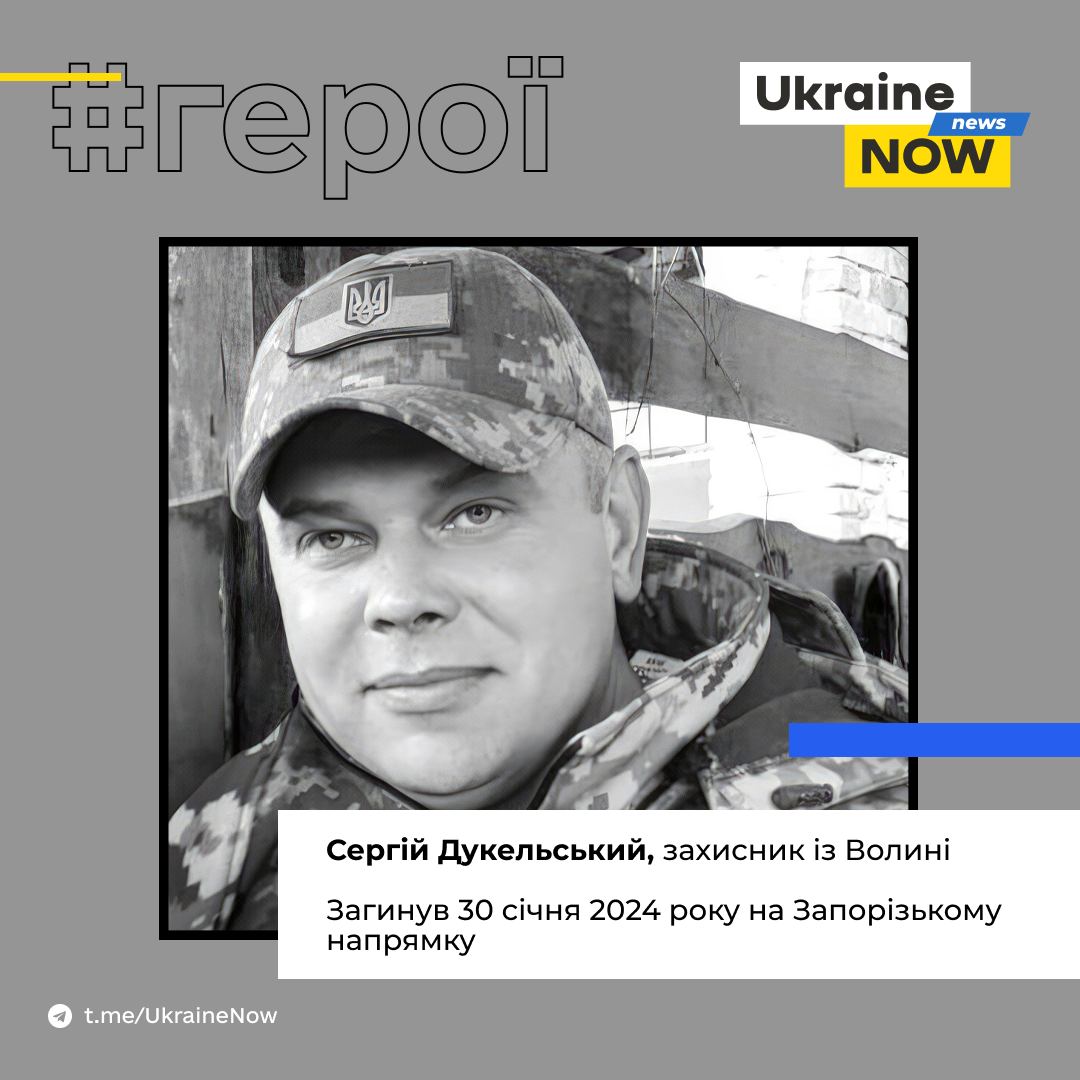 Житель Нововолинська, уродженець села Петрове Поромівської громади Сергій Дукельський загинув 30 січня 2024 року в Запорізькій області.