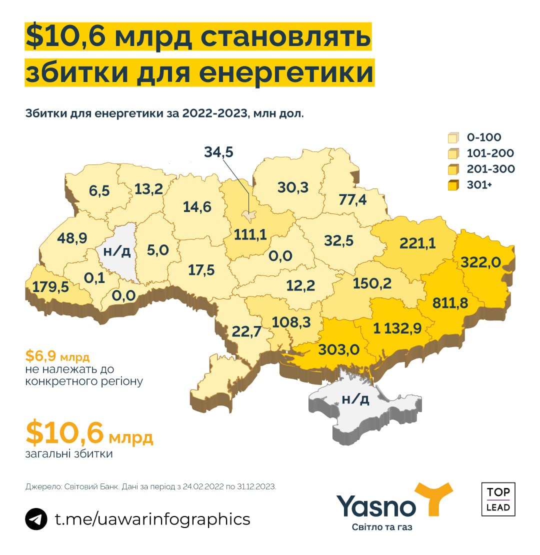 Збитки від війни для енергетичної інфраструктури кожної області України.