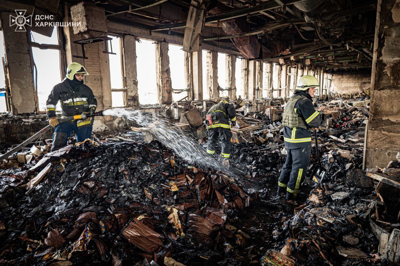 The fire at the enterprise in Kharkiv has been extinguished. The area of fire after the missile strike reached almost 10 thousand square meters. Search operations are underway. There may be victims under the rubble.