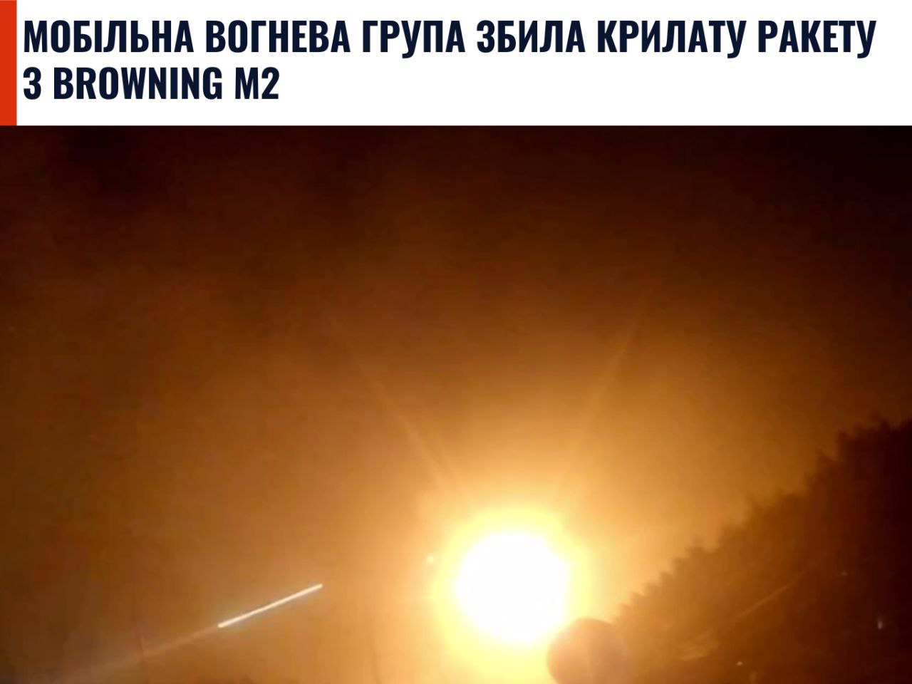 🔥 Вночі на підльоті до Києва одну з крилатих ракет збили з кулемета Browning M2. Її перехопила мобільна вогнева група Сухопутних військ.
