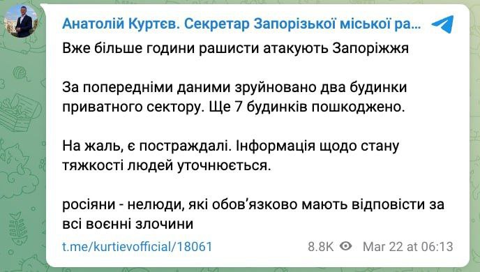 💔 This is how the residential sector looks like in Zaporizhzhia